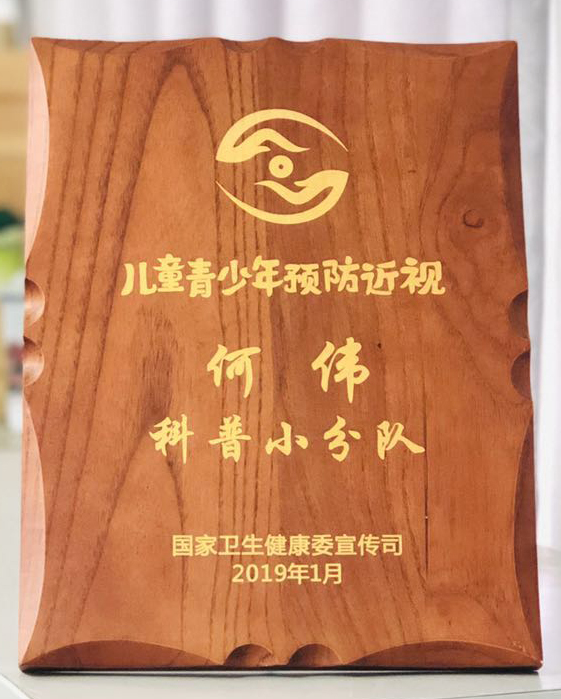 2019年1月,国家卫健委在全国成立了10支儿童青少年预防近视科普小分队,其中以获得2018年“中国好医生”荣誉称号的何伟命名的“何伟科普小分队”成为其中一员。