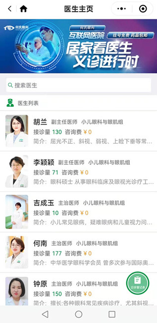 Step 1:扫码进入小程序,点击【线上问诊】,进入【医生列表页】
