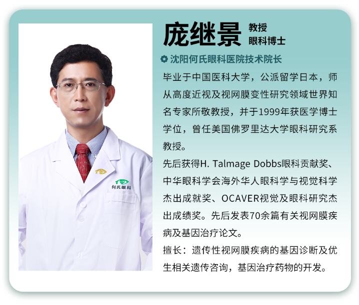 近日,国际知名基因治疗专家、原美国佛罗里达大学眼科研究系教授,沈阳何氏眼科医院技术院长庞继景医生,根据遗传性视网膜疾病的发病机理,为基因问题导致的早发性高度近视和视网膜变性的控制提供了新的解决方案。